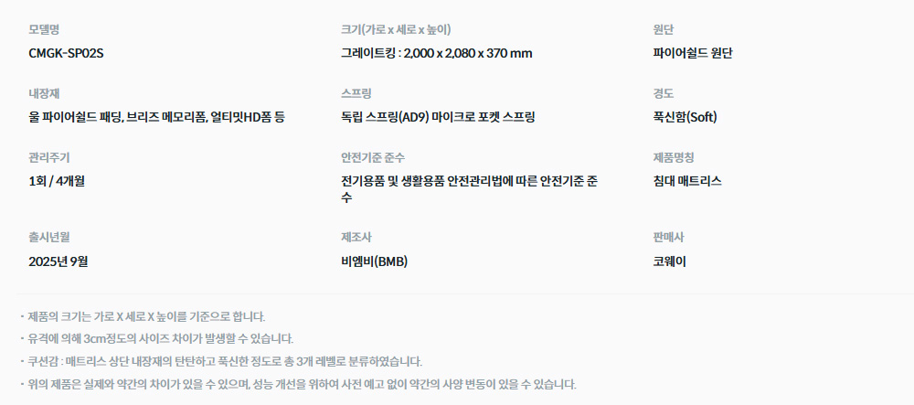 CMGK-SP02S BEREX 시그니처 파이어쉴드 매트리스 그레이트킹 (케어) 렌탈 자가관리 3년약정 하얀색 농협카드